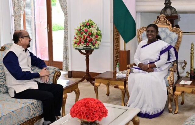 Home छत्तीसगढ़ राष्ट्रपति मुर्मु से राज्यपाल डेका ने की सौजन्य भेंट छत्तीसगढ़राज्य राष्ट्रपति मुर्मु से राज्यपाल डेका ने की सौजन्य भेंट By Desk Reporter - July 8, 2025 65 0 FacebookTwitterPinterestWhatsApp राज्यपाल रमेन डेका ने आज नई दिल्ली राष्ट्रपति भवन में राष्ट्रपति द्रौपदी मुर्मु से सौजन्य भेंट की।