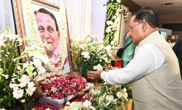 मुख्यमंत्री विष्णुदेव साय राजधानी रायपुर के जोरा स्थित श्री सालासर बालाजी धाम के सभागार में आयोजित सुप्रसिद्ध कवि पद्मश्री डॉ. सुरेंद्र दुबे की श्रद्धांजलि सभा में शामिल हुए। मुख्यमंत्री ने स्वर्गीय डॉ. दुबे के छायाचित्र पर पुष्पांजलि अर्पित कर उन्हें श्रद्धांजलि दी। उन्होंने ईश्वर से प्रार्थना की कि दिवंगत आत्मा को अपने श्रीचरणों में स्थान दें तथा शोकाकुल परिजनों को इस दुःख की घड़ी में धैर्य और शक्ति प्रदान करें।