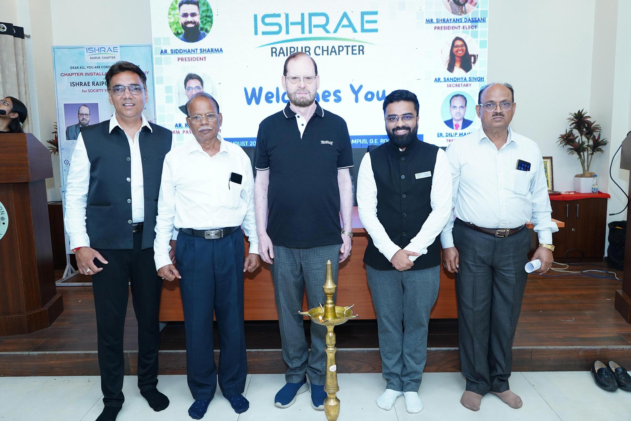 ISHRAE के पदभार ग्रहण समारोह का आयोजन NIT रायपुर के गोल्डन टावर में धूमधाम से किया गया। इस अवसर पर मुख्य अतिथि के रूप में ISHRAE के रीजनल डायरेक्टर श्री अमरेन्द्र गोस्वामी जी उपस्थित रहे। समारोह की अध्यक्षता श्री रवि जग्गी जी ने की। रायपुर सब चैप्टर उसके उत्कृष्ट कार्यों के लिए,ISHRAE के राष्ट्रीय कार्यालय के द्वारा रायपुर चैप्टर के रूप में प्रमोटेड किया गया लिए।