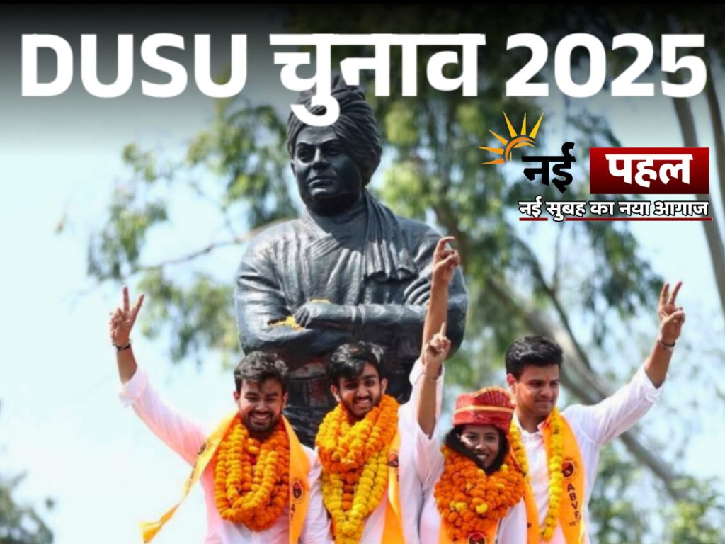 नई पहल न्यूज नेटवर्क। नई दिल्ली। दिल्ली विश्वविद्यालय छात्र संघ (DUSU) चुनाव 2025 के नतीजे शुक्रवार को घोषित हुए और कैंपस की राजनीति एक बार फिर सुर्खियों में आ गई। अखिल भारतीय विद्यार्थी परिषद (ABVP) ने अपनी परंपरागत मजबूती को कायम रखते हुए चार में से तीन पद जीत लिए। वहीं, राष्ट्रीय छात्र संघ (NSUI) ने उपाध्यक्ष पद पर जीत दर्ज कर यह संदेश दिया कि डीयू में मुकाबला अभी भी दिलचस्प और बहुस्तरीय है।
