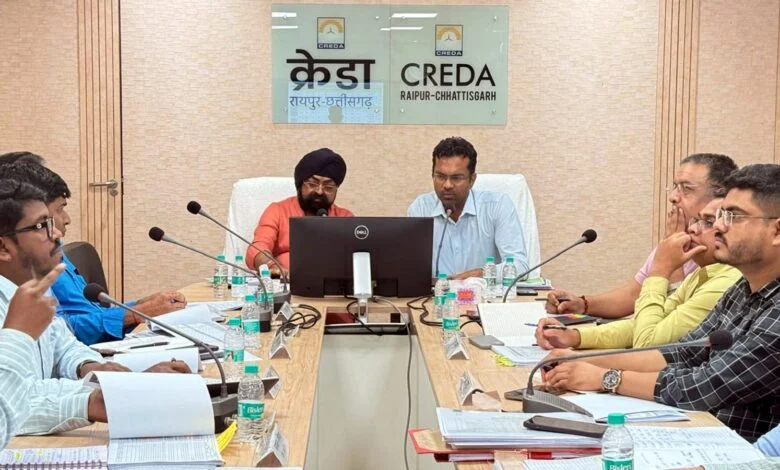 रायपुर। छत्तीसगढ़ राज्य अक्षय ऊर्जा विकास प्राधिकरण (क्रेडा) के सभाकक्ष में आयोजित उच्च स्तरीय बैठक में क्रेडा अध्यक्ष एवं सीईओ ने क्रेडा द्वारा क्रियान्वित की जा रही शासन की महत्वपूर्ण योजनाओं की समीक्षा करते हुए अधिकारियों को समय सीमा में कार्यों को गुणवत्तापूर्ण, पारदर्शिता और जवाबदेही के साथ पूर्ण करने के निर्देश दिए। क्रेडा की योजनाएं सीधे तौर पर ग्रामीणों के विकास से संबंधित योजनाएं हैं। इसके अंतर्गत ग्रामीणों को कृषि हेतु सोलर पम्प के माध्यम से सिंचाई व्यवस्था उपलब्ध कराना, सोलर ड्यूल पम्प के माध्यम से पेयजल की आपूर्ति सुनिश्चित करना तथा सोलर हाई मास्ट के माध्यम से ग्रामीण क्षेत्रों में रात्रिकालीन प्रकाश व्यवस्था उपलब्ध कराया जाता है।