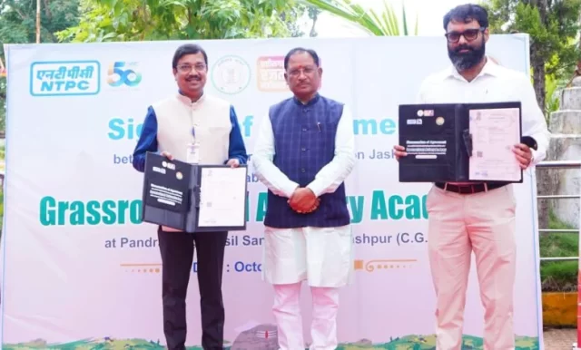 रायपुर. मुख्यमंत्री विष्णु देव साय की उपस्थिति में आज जशपुर जिले के बगिया स्थित मुख्यमंत्री कैंप कार्यालय में बगीचा विकासखंड अंतर्गत सन्ना पंडरापाठ में तीरंदाजी अकादमी स्थापित करने के लिए जिला प्रशासन और एनटीपीसी के बीच एग्रीमेंट किया गया। एनटीपीसी द्वारा यह परियोजना कॉर्पोरेट सामाजिक दायित्व (CSR) के तहत 20 करोड़ 53 लाख रुपए की लागत से संचालित की जाएगी। इस अवसर पर कलेक्टर श्री रोहित व्यास और एनटीपीसी के अपर महाप्रबंधक (मानव संसाधन) श्री बिलाश मोहंती उपस्थित थे।