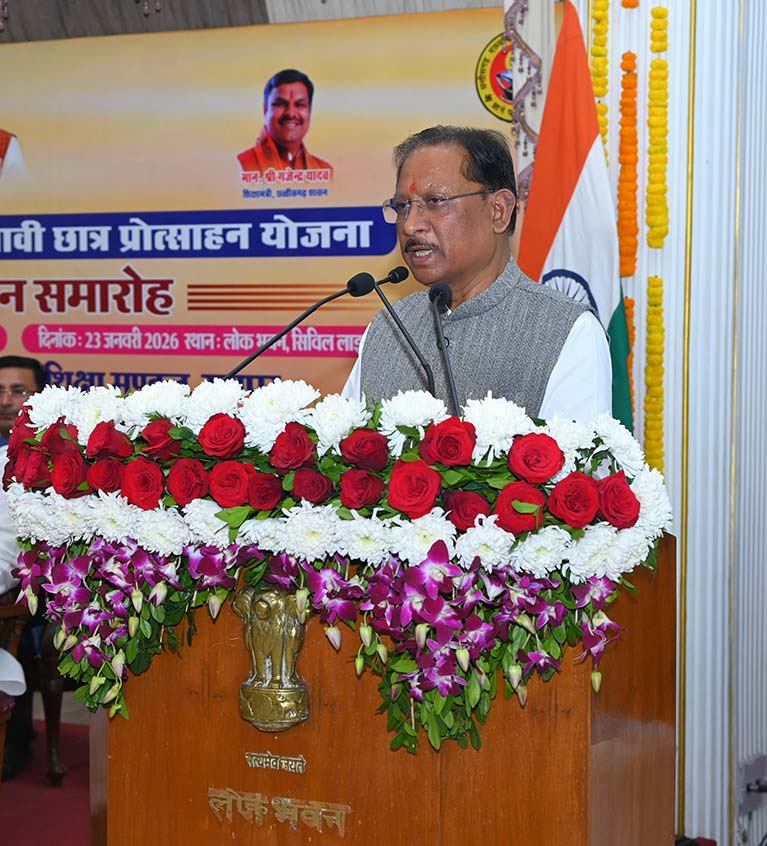 रायपुर, 23 जनवरी 2026/राज्यपाल श्री रमेन डेका के मुख्य आतिथ्य एवं मुख्यमंत्री श्री विष्णुदेव साय की अध्यक्षता में आज लोक भवन में 10वीं एवं 12वीं के मेधावी विद्यार्थियों को सम्मानित किया गया। ये 2024 एवं 2025 के टॉप 10 मेधावी और विशेष पिछडी जनजाति के टॉप 01 विद्यार्थी है। स्कूल शिक्षा मंत्री श्री गजेन्द्र यादव विशेष अतिथि के रूप में उपस्थित थे।