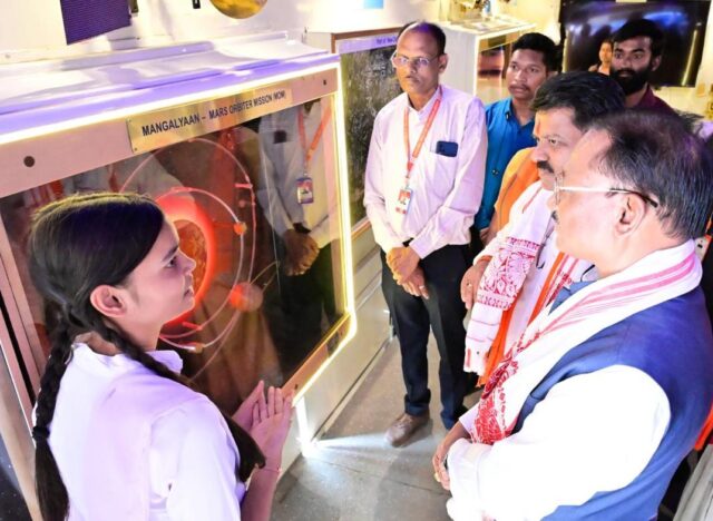 रायपुर 17 अप्रैल 2026/अंतरिक्ष विज्ञान के प्रति जिज्ञासा और वैज्ञानिक सोच को बढ़ावा देने के उद्देश्य से जशपुर जिले में “स्पेस ऑन व्हील्स” कार्यक्रम ने बच्चों में नई ऊर्जा का संचार किया है। रणजीता स्टेडियम में भारतीय अंतरिक्ष अनुसंधान संगठन (इसरो) की विशेष मोबाइल प्रदर्शनी बस के आगमन पर मुख्यमंत्री श्री विष्णुदेव साय ने अंतरिक्ष गाड़ी का अवलोकन किया और प्रदर्शित रॉकेट, उपग्रह तथा विभिन्न अंतरिक्ष मिशनों के मॉडलों को देखा। इस दौरान उन्होंने विद्यार्थियों से आत्मीय संवाद करते हुए उनकी वैज्ञानिक समझ और जिज्ञासा की सराहना की।